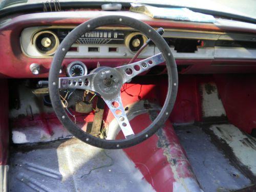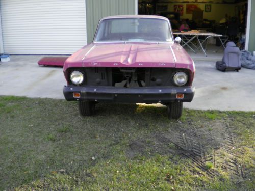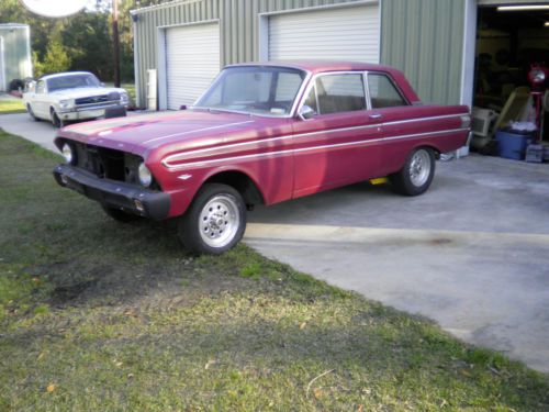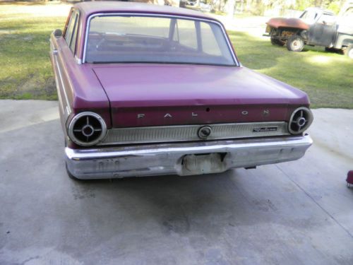 1964 Falcon in good shape. It has a chip in the windshield, has some back yard patch panels in the front floor in a couple of spots, has one rust spot on the right door,I have the 260 engine that came in it and it was a running engine before the previous owner removed it . It was an automatic from Ford. It now has a clutch pedal that came out of another 64 Falcon and still has automatic brake pedal in the trunk.The front seat needs to be recovered.I was going to straight axle this car for a old gasser look but have to many projects, so my loss is your gain.This is a solid car and would make someone a good project. The tires and rims that you see in the picture does not go with the car I will put a set of steel rims on it for the new owner to haul it with. This car does not run and will need to be trailered or towed. I reserve the right to end the auction early because the car is for sale locally. I urge bidders to look at the car in person. And the car does not leave until your funds have cleared the bank but cash in hand works good. The car will need to be paid for within 10 days. The buyer is responsible for shipping. I can deliver up to 200 miles for 1.75 per mile. The new owner would need to pick the car up within 15 days after funds have cleared the bank. Please on serious bids. 843-56two-7two9two. If any questions please give me a call.