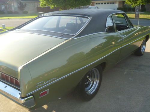 1970 1/2 FORD FALCON 47K ORG MILES WITH P/S A/C!!! THIS IS A VERY NICE CAR HAS HAD 1 REPAINT THE PAINT IS VERY NICE SEE PICTURES NO RUST!!! BUMPERS HAVE BEEN RECHROMED. NEW MAGNUM 500 WHEELS WITH MICKEY THOMPSON TIRES 15X8 REAR 15X7 FRONT THE SHAKER HOOD WAS ADDED TO THE CAR, ITS A REAL 429 SHAKER THE ONLY REPO PART IS THE TRIM RING ON THE HOOD, I SPENT A LOT OF MONEY AND TIME FINDING A REAL SHAKER!!!! I PUT 2 1/2 INCH PIPE WITH FLOWMASTERS ON THE CAR ALL NEW FRONT TO BACK SOUNDS GREAT!! THE MOTOR IS A 302 WITH A C4 AUTO TRANS. ITS THE ORG MOTOR THAT CAME IN THE CAR RUNS GREAT I DROVE THE CAR FROM ARKANSAS TO FT WORTH TX LAST MONTH TO THE GOODGUYS MEET AT TEXAS MOTOR SPEEDWAY 750 MILES ROUND TRIP THE CAR DRIVES GREAT I WOULD DRIVE IT ANYWHERE THE CAR HAS POWER STEERING AND A/C THE A/C IS NOT BLOWING COLD BUT I'M SURE A CHARGE AND IT WOULD BLOW COLD!! FOR THE INSIDE!! ITS ORIGINAL!!! YES I SAID ORIGINAL!!! THE PICTURES WILL SPEAK FOR THE INSIDE!!! THE SEAT ARE IN GREAT SHAPE THE DASH IS MINT!!! DOOR PANLES MINT!! THIS CAR IS SO FUN TO DRIVE!! I HAVE DONE GOOD AT LOCAL SHOWS WITH THE CAR THE TRUNK IS VERY NICE. NEW MAT WHEN THE CAR WAS PAINTED THEY EVEN SAVED ALL THE STICKERS ON THE UNDERSIDE OF THE TRUNK AND IN THE DOOR JAMS!!! THE BRAKES HAVE BEEN DONE!! THIS IS JUST A GREAT CAR RUST FREE!! IF YOU HAVE ANY QUESTION FEEL FREE TO CALL 501-519-2477 THIS CAR IS VERY NICE!! THE UNDERSIDE IS VERY NICE ALSO!!! YOU JUST DON'T FIND CARS LIKE THIS ANYMORE!!!!
