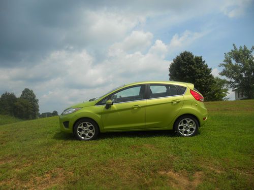 This is a 2011 Ford Fiesta. Green exterior with a black and grey/silver interior. Premium sound system: sat radio/mp3//cd/sync system. Sunroof, push button start (keyless) factory, chrome trim, premium wheel (tires 70%). 28,920 miles. Automatic.