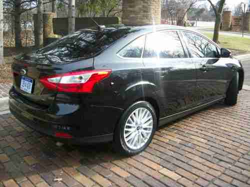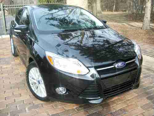 You are viewing a super super sharp TUXEDO METALLIC BLACK MATCHED WITH A SPECIAL EDITION 2-TONE RED & BLACK LEATHER INTERIOR 2012 FORD FOCUS SEL edition SEDAN !!! ....Loaded!!!!..Outfitted in a GORGEOUS GORGEOUS TURQUOISE METALLIC PAINT with a welcoming tan leather interior......Only 10,520 MILES......2.0L 121Cu. In. l4 GAS DOHC Naturally Aspirated engine............Voice activated NAVIGATION system which features a fully integrated jukebox/MP3 player/SYNC powered by microsoft /GPS technology with laser pinpoint accuracy as well as with 3D mapping/movie listing and sports scores/weather and gas prices/HD radio a premium SONY certified audio system with surround sound and a huge 10GB hard drive all powered by a super sounding SONY premium sound system...........Excellent gas mileage vehicle............Will average more than 34 mpg easy................POWER driver's seat..........Reverse back up sensors which alert you when backing up to an object by sounding off an alarm..........Premium TAN outfitted leather seats throughout in MINT condition.................Am/Fm/Cd..........SYNC powered by microsoft which integrates all your ipod features into one.........Fog lights.........Anti-lock brakes system...........Professional light smoke window tint all the way around to accent the Black Tuxedo exterior to perfection......Dual restraint airbags................Power windows............Power locks............Cruise control.............Power heated mirrors................Manual telescoping steering wheel.........Tire pressure monitoring system which alerts you when one of your tires is low..............Steering wheel controls..........FOG LIGHTS...........Rear defroster...........Auxilliary audio input........Body colored bumpers................leather wrapped steering wheel and so much more..........This FOCUS is in absolute awesome awesome condition.....Runs/drives perfect...An EXTREMELY fun vehicle to drive which integrates european styling and handling meshed with american guts and glory......Super clean in out and in marvelous condition.
