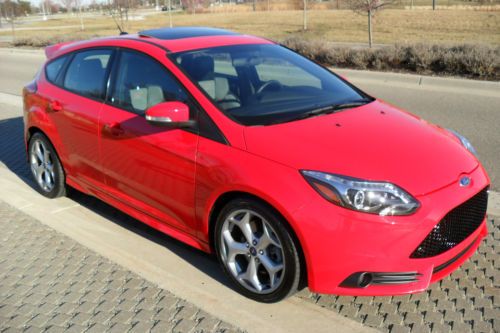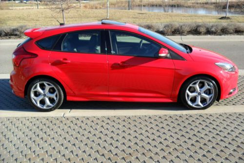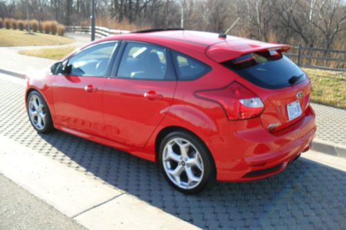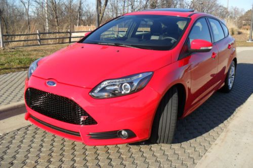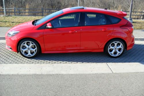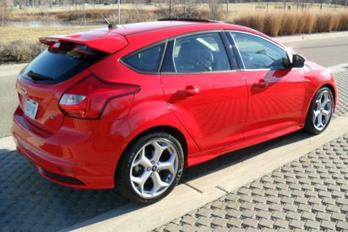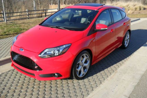 YOU ARE VIEWING VERY RARE CAR IN THE MARKET.. 2013 FORD FOCUS ST2 WITH BEAUTIFUL COLOR COMBO RACE RED MATCHED WITH CHARCOAL BLACK/GRAY RECARO SEATS ...ONLY 14,628 MILES BEARLY OWNED/DRIVEN...CAR DRIVES/LOOKS LIKE NEW..THIS HOT HATCHBACK COMES FULLY LOADED WITH ALOT TOYS... ECOBOOST 2.0 LITER I4 GTDI DOHC TURBOCHARGED VCT...6-SPEED MANUAL...10-SPEAKER SONY NAVIGATION SYSTEM MYFORD TOUCH W/8" LCD TOUCH SCREEN DUAL ZONE ELECTRONIC AUTO TEMP CONTROL..HD RADIO SIRIUS SATELLITE RADIO..RECARO PARTIAL LEATHER SEATS ...AUXILIARY AUDIO INPUT..BLUETOOTH CONNECTION..MP3 PLAYER.. POWER SUNROOF...POWER MIRRORS..POWER DOOR LOCKS..POWER OUTLET..POWER STEERING..POWER WINDOWS..4-WHEEL DISC BRAKES..A/C..ABS..ADJUSTABLE STEERING WHEEL..18"INCH ALUMINUM WHEELS WITH SPORT TIRES..CHILD SAFETY LOCKS..CONVENTIONAL SPARE TIRE..CRUISE CONTROL..DRIVER ILLUMINATED VANITY MIRROR..PASSENGER VANITY MIRROR..ENGINE IMMOBILIZER..FLOOR MATS..FOG LAMPS..FRONT WHEEL DRIVE..INTEGRATED TURN SIGNAL MIRRORS..INTERMITTET WIPERS..KEYLESS ENTRY..KEYLESS START..LEATHER STEERING WHEEL..PASS-THROUGH REAR SEAT..PASSENGER AIRBAG SENSOR..REAR BENCH SEATS..REAR DEFROST..REAR SIDE AIRBAG..REAR SPOILER..SECURITY SYSTEM..STABILITY CONTROL..STEERING WHEEL AUDIO CONTROLS..TELEMATICS..TIRE PRESSURE MONITOR..TRACTION CONTROL..TRIP COMPUTER..TURBOCHARGED..VARIABLE SPEED INTERMITTENT WIPERS..CUSTOM LED HEADLIGHTS.. TOO MANY OPTIONS TO LIST..VERY FUN CAR TO DRIVE AND PRETTY FAST WITH 252 HORSEPOWER..GREAT ON GAS 23 MPG CITY/32 MPG HWY..DON'T MISS OUT ON THIS BAD BOY!!! THIS IS A NO RESERVE AUCTION WHICH MEANS HIGHEST BIDDER WILL TAKE THIS RARE LIKE NEW 2013 FOCUS ST HOME!!!