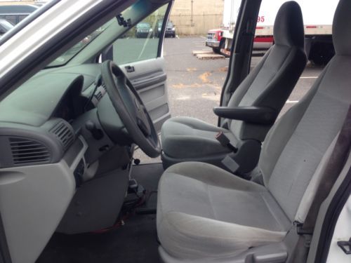 UP for sale ford freestar 2005 wheelchair manual rear ramp , highway miles Wheelchair ramp good for private and transport van, low floor with 57' excellent condition, run strong, new alternator, pulleys, belt, battery, brakes, rebuilt transmission, replaced with used engine down safety, very clean inside and out , runs good. Garage keeping. Engine 6V 3.9- cylinder,, fuel type Gas, new services, oil change, Run good please come to drive this van you will buy it right a way. if you do not ready do not bather to call or email. Low miles. PS, PB, PW, PM, PL, PM, Tilt, Cruise, Ice-Cold Front and Rear A/C Runs, and Drives Perfect, Everything Works Great Super Clean Inside, and Out, Interior. NEVER CLAIM TO HAVE THE "CHEAPEST" VEHICLES ON EBAY. WE DO SPEND A LOT OF TIME AND MONEY INSURING YOU GET A GOOD QUALITY VEHICLE AT A GREAT PRICE. I SPEND THE TIME AND MONEY TO INSURE YOUR NEW PURCHASE IS READY FOR A 1600 MILE DRIVE HOME. I SPEND THE TIME AND MONEY TO TRAVEL ALL OVER THE COUNTRY LOOKING FOR THE RIGHT VEHICLES. AND PUT THE CAR IN MY SHOP FIXED EVERYTHING NEED TO BE FIXED. THE engine and transmission is warranty. any question call wendy 7328221300 |