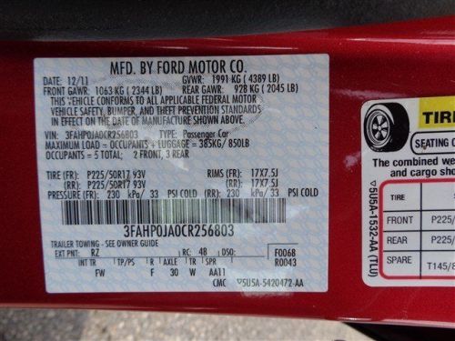VIN (Vehicle Identification Number): 3FAHP0JA0CR256803