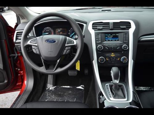 The 2014 Ford Fusion has the upscale style and front grille that resemble higher-priced European vehicles, yet with a price tag families will appreciate. The interior has a sleek yet accessible modern look, complemented by shiny angled trim that adds to its edgy feel. Also, the Fusion has been given an assortment of interesting colors, boldly angled front headlights, and exciting new wheel designs. Plus, with engine choices that range from 175 to 240 Horsepower on various models, it has the power to add excitement back into your driving. The Fusion comes in 8 trims: the Base S, SE, S Hybrid, Hybrid SE, Titanium, Hybrid Titanium, Fusion Energi SE, and Fusion Energi Titanium. The Fusion has some notable innovations related to fuel, charging, and related capabilities. One is an Easy Fuel capless system when you fill up at the pump. The other is a lighted ring around the charge port on the Energi Plug-in model. It gets progressively brighter as the car charges until it is at full brightness when the Fusion is fully charged. The Energi can run exclusively on electric power up to 21 miles, and then the gasoline engine is engaged to keep it going. The Hybrid model can drive up to 62 mph on electric power alone, and it also switches between the gas and electric motors. The Base S Model includes Ford's SYNC wireless communication system with voice control, 16-inch wheels, an AM FM CD Radio with Auxiliary input and four speakers, tilt steering wheel, and manual climate control. It comes with a 2.5-Liter, 4-Cylinder, Duratec Engine, with 6-Speed Automatic Transmission that gets an EPA estimated 22 MPG City and 34 MPG Highway. More expensive trims give you features like rear air vents, a rearview camera, Sony Premium Sound System with Satellite Radio, leather seats, and a 2.0-liter turbocharged engine. Plus, look for optional technology like Active Park Assist, Blind-Spot Monitoring, a Navigation System, and the amazing Lane Keeping System. Come drive the 2014 Ford Fusion Today All prices reflect our policy of SPECIAL INTERNET ONLY PRICING. In order to insure you the best possible no-haggle price available you must present a printout of this ad upon arrival. We pride ourselves in making sure that our pricing reflects a fair market price when compared to similar vehicles listed by our competition. Prices do not include tax, title, license & doc fees.