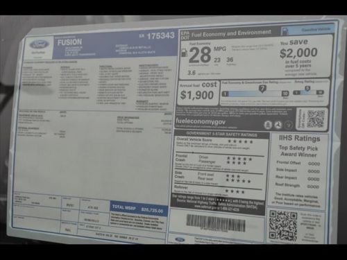 The 2014 Ford Fusion has the upscale style and front grille that resemble higher-priced European vehicles, yet with a price tag families will appreciate. The interior has a sleek yet accessible modern look, complemented by shiny angled trim that adds to its edgy feel. Also, the Fusion has been given an assortment of interesting colors, boldly angled front headlights, and exciting new wheel designs. Plus, with engine choices that range from 175 to 240 Horsepower on various models, it has the power to add excitement back into your driving. The Fusion comes in 8 trims: the Base S, SE, S Hybrid, Hybrid SE, Titanium, Hybrid Titanium, Fusion Energi SE, and Fusion Energi Titanium. The Fusion has some notable innovations related to fuel, charging, and related capabilities. One is an Easy Fuel capless system when you fill up at the pump. The other is a lighted ring around the charge port on the Energi Plug-in model. It gets progressively brighter as the car charges until it is at full brightness when the Fusion is fully charged. The Energi can run exclusively on electric power up to 21 miles, and then the gasoline engine is engaged to keep it going. The Hybrid model can drive up to 62 mph on electric power alone, and it also switches between the gas and electric motors. The Base S Model includes Ford's SYNC wireless communication system with voice control, 16-inch wheels, an AM FM CD Radio with Auxiliary input and four speakers, tilt steering wheel, and manual climate control. It comes with a 2.5-Liter, 4-Cylinder, Duratec Engine, with 6-Speed Automatic Transmission that gets an EPA estimated 22 MPG City and 34 MPG Highway. More expensive trims give you features like rear air vents, a rearview camera, Sony Premium Sound System with Satellite Radio, leather seats, and a 2.0-liter turbocharged engine. Plus, look for optional technology like Active Park Assist, Blind-Spot Monitoring, a Navigation System, and the amazing Lane Keeping System. Come drive the 2014 Ford Fusion Today All prices reflect our policy of SPECIAL INTERNET ONLY PRICING. In order to insure you the best possible no-haggle price available you must present a printout of this ad upon arrival. We pride ourselves in making sure that our pricing reflects a fair market price when compared to similar vehicles listed by our competition. Prices do not include tax, title, license & doc fees.