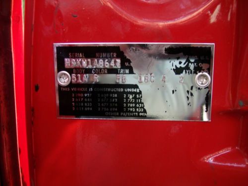 THE VEHICLE IS EQUIPPED WITH A 3 SPEED AUTOMATIC TRANSMISSION AND A 332 CUBIC INCH ENGINE WITH A 2 BARREL CARB. THE ENGINE STARTS RIGHT UP, PURRS LIKE A KITTEN, SUPPLIES PLENTY OF POWER AND NEEDS NOTHING. I HAD ALL FLUIDS CHANGED THE YEAR AFTER I BOUGHT THE CAR AND EVERYTHING MECHANICAL IS IN EXCELLENT OPERATING CONDITION. THE ENGINE OIL WAS CHANGED THIS SEASON. THE UNDER HOOD AREA IS DETAILED TO A HIGH DEGREE AND LOOKS GOOD.