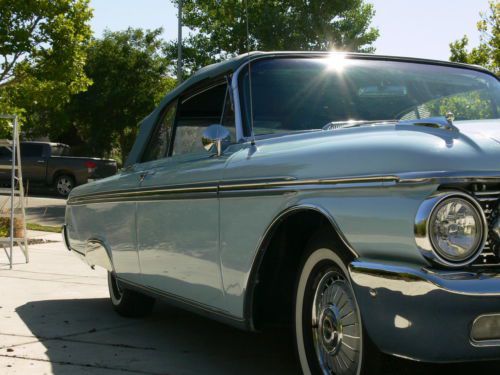 62 Sunliner with gorgeous paint, body chrome and stainless. Original 57,000 miles with new brakes, steering, top, shocks, water pump, tune up. Brand new interior side door panels, not installed, come with car. Really nice all blue car that drives, handles, stops, starts and steers effortlessly.