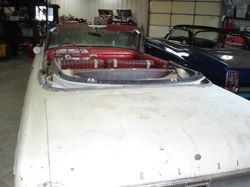 You're looking at a 1962 Ford Sunliner convertible in very original condition. The vehicle has been store since 1971 and was last licensed for the road in 1969. Paint appears to be all original. Interior is all original, including the, radio, seats and carpet The power convertible top appears to be original. There is VERY little rust and only in one small area of the left rear quarter. The floors and trunk are in incredible solid condition. The trunk still has the original white paint on the bottom. PLEASE SEE THE PICTURES. The vehicle is it's original Wimbledon white exterior and red interior. The vehicle has a set of newer aluminum wheels on it, but comes with steel wheels, tires and original hubcaps. I believe the mileage of 88,862 to be correct, however I have no way to guarantee it.