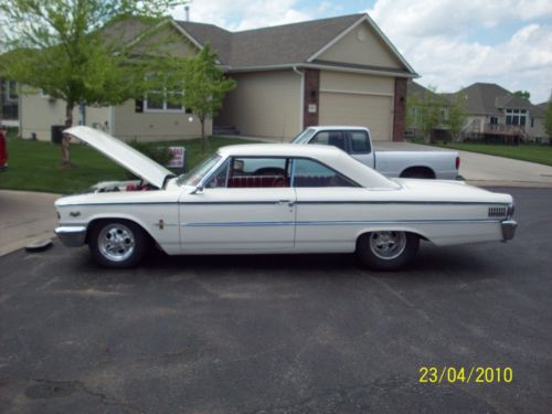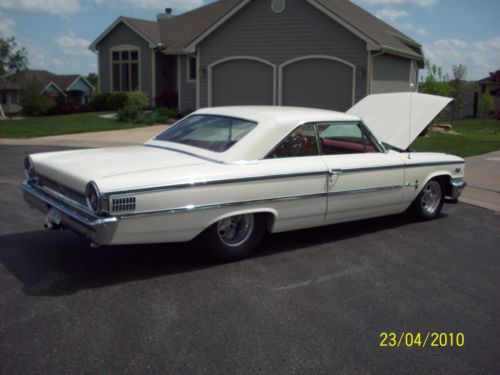 WOW! Never thought I would be posting this car for sale but retirement is looming and we are looking to relocate to Costa Rica. So here goes. One of a kind. Call it what you want Retro Rod, classic. whatever. Most just call it COOL! 1963 1/2 Galaxie XL. This car is professionally tubbed with backseat and full interior still in car. 4.30 Detroit locker with 4 wheel disc brakes. Weld wheels and Hoosier tires. The car was subject to a rotisserie restoration a few years back with no expense spared. The moldings, grill and bumpers were chromed at a cost of 8K. A Crites AFX hood has been added. 427 badging on the fenders. Originally a 352 car. The underside is painted white as well. This was a ZERO rust Texas car when I bought it about 25 years ago. Outstanding XL interior with nice console. Tilt wheel, POWER WINDOWS (rare) and under dash AC unit. The engine is often mistaken for a SOHC or Boss 9. In reality it is a 4.6 modular motor that I pulled the fuel injection off of. I built a 2 four intake and mounted 2 Edelbrock 500's on. Polished Sullivan valve covers and MSD coil packs made to look like a distributor fire the MSD Mod 6 box. 1 wire alternator and power rack and pinion steering as well. T 45 % speed. This is truly a Saturday night Barrett Jackson car. I have the car for sale locally as well. It will not be cheap but in this case quality cost. Clear Colorado title in my name. Located 25 miles form Denver. Call Dan with any questions at 785 250 1789