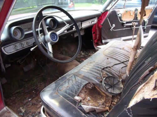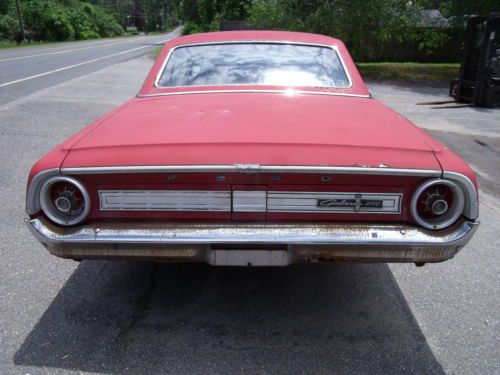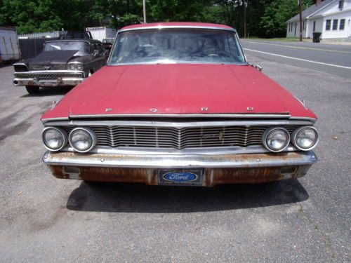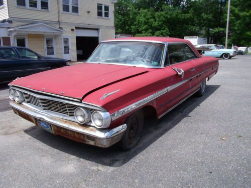 This listing is for a barn fresh 1964 Ford Galaxie 2 door non post car, with a 352 4 bbl, automatic console car from North Carolina. The car is over all sound and solid, most all rust you see is surface and rather minimal with the exception of a floor pan in the rear that I can see. This is a great restoration project, being all there. The engine ran when moved about 4-5 years ago - the interior has been victim to the sun and years - but is still there. I could not open the trunk as I could not find the key at the moment, but I did get under photos of the pans.