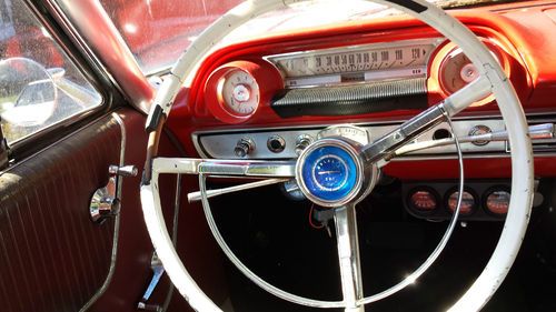 Here we have a Very Beautiful 1964 Ford Galaxie 500 that is up for sale. The car has the 390ci engine and tranny which were both the originals sold with the car in 1964. There are a few performance upgrades to the engine, including Edelbrock carb and valve covers, Mallory ignition, and a comp cam with the paperwork that I have pictured. This Gal also has a Ford 9in. rear end and American racing 5 soke rims. The Gal sits very nice and the whole undercarriage is clean. The car is equipped with the factory A/C and red leather interior that has 2 very minor holes in it. The headliner is near mint except for very tiny tear. The paint job is original so it is dull but gives this car a very good look especially with the fiberglass teardrop hood and fenders. There arent many cars that have the body lines like this one does. The hood and fenders truly complete the look. The front end was backed into damaging the bumper and grille but. The radiator and fan arent in the car because the original 4 core was being repaired and not put back in. I have the original hood, right fender, and radiator that are available for the Gal. The engine runs great and sounds SICK! It has such a low growl, it is one of the best sounding cars that I have ever heard. This 390 with the minor upgrades and comp cam make this Gal move. All this car needs is a little TLC and a fresh coat of paint. This car doesn't leak, drip, or knock. This is a truly great car and if painted will be one of the meanest looking cars on the road! This car comes with the original title from North Carolina, the original owners manual from 1964, the comp cam paperwork, and current registration. I am selling thiscar as is as seen simply because I need to. Please ask any questions. Thank you and good luck bidding
