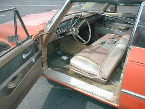 UP FOR YOUR CONSIDERATION WE HAVE A 1961 FORD GALAXY CLUB VICTORIA, 2ND OWNER CAR WITH X CODE 352 V8 AND CRUISOMATIC TRANS. INTERIOR IS ORIGINAL AND DECENT CONDITION. TRIM IS ALMOST ALL THERE(SEE PICS OF TRIM INSIDE CAR). CAR HAS VERY LITTLE RUST AND RUNS AND DRIVES VERY WELL. TRANS SHIFTS SMOOTHLY AND CAR APPEARS TO BE CORRECT MILES HOWEVER NOT GUARANTEED TO BE BUT CONSIDERING WEAR AND CONDITION OF OVERALL CAR. ALL GLASS GOOD, FRAME AND UNDER BODY GOOD WITH VERY MINIMAL RUST. DON'T MISS OUT ON THIS GREAT CAR FOR RESTORATION OR DRIVE AS IS. BODY PRIMERED WITH RED OXIDE SOME 22 YEARS AGO. BID TO BUY WITH CONFIDENCE.