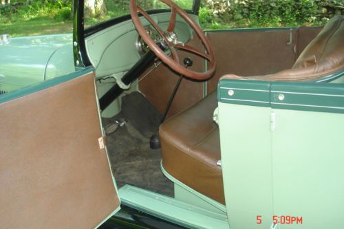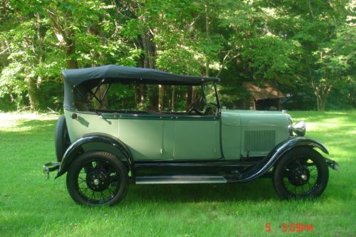 1928 Ford Model AR Phaeton, very early AR with brake on left side against kick panel. This car was professionally restored to original in 1979 or 1980. My father purchased the car in 1980 and won several first places at Belltown meet from 1981 to 1992 and second place thereafter when he presented the car. From 1997 to present the car was rarely driven and never entered in competition. Spent that period under a car cover in a locked garage. It was a high 90's point car but is now in need of a few items. The ignition switch is very difficult to turn, otherwise functions fine. I have been unable to locate a correct front floor mat, this one is cracked. Mice chewed on one kick panel and some seat piping. A few small touch up spots needed on the paint. It has been throughly cleaned, carb disassembled and cleaned, fuel tank flushed and runs excellently. Very original restoration of and early rare AR Model A Phaeton $ 25,000 will consider offers. Call Tom 239-821-5576