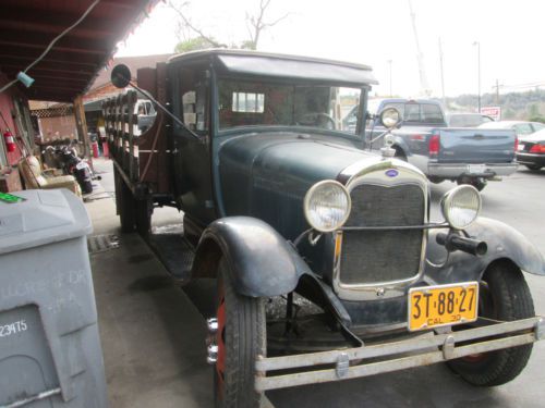 1930 FORD MODEL AA.GREAT SOLID TRUCK.RUNS AND DRIVES.IT A SPECIAL 3 TON.EXTENDED BED FROM FACTORY.ORIGINAL HARDWARE ON BED RAILS.TIE DOWN RATCHETS,HAS THE GRANNY GEARS.ALL ORIGINAL AND SOLID.BEEN TOLD IT HAS 28 HEADLIGHT LEMS ON IT?NICE FOR PARADES ECT.WE DROVE IT 35 MILES OTHER DAY RAN GREAT.WITH LITTLE TLC CAN BE EXCELLENT TRUCK.IF GAS LEFT ON IT LEAKE OUT CARB BOWL.SO WE TURN OFF.QUESTION EMAIL ILL TRY AND ANSWER.THANK YOU FOR LOOKING. |