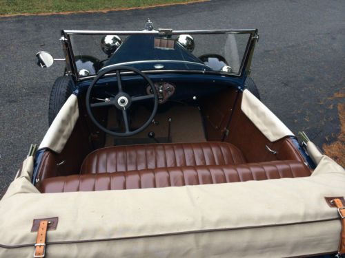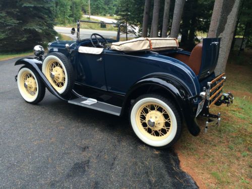 1930 FORD MODEL A DELUXE ROADSTER This automobile was recently purchased from a private collection, the car has been in the collection for over 20 years. The gentlemen bought this car several years ago and had it completely restored in the 1990's. This was a complete original straight car before its restoration. Professional body off frame, ground up restoration done in the 1990's. This automobile has been meticulously cared for since its restoration and has been used very little over the years. SHEET METAL/ PAINT: All original Henry Ford sheet metal, stunning body, no signs of patch panels. Paint is excellent: has a few minor nicks and scratches, but not very many considering how long this car has been done. Paint is not all chipped in normal places (around door hinges, hood hinges, rumble seat lid, etc.) for a car that has been done this long, refer to pictures. Hood alignment is great, doors open/ shut great/ rumble lid open and closes great. All chrome/ stainless is in great shape (bumpers, windshield, hub caps, stone guard, radiator shell, etc.). This car looks like it just rolled off the show room floor. CHASSIS: Motor completely professionally rebuilt, runs excellent, lots of power, all new babbitt bearings, very clean and detailed nice, new radiator. Frame is excellent, underneath of car is very clean- and shinny- refer to pictures. Hard to find shocks are on the car and in great working order. Brakes were recently completely gone through- new linings, hubs turned, pins/ roller replaced as needed, and front brake floaters installed. Car stops great! Front wheel bearings cleaned and repacked, new seals on rear drums installed. Recently new leakless water pump with aluminum fan installed. Firestone white wall tires with correct steel stem inner tubes. Car is ready to go. UPOLISTRY: LeBaron Bonny interior professionally installed during restoration. Correct beautiful brown seats and door panels, pockets in kick panels in cowl, rumble seat in great shape, nice matching rug in front and correct rubber mat in rumble seat floor. Top is slightly faded, but has no rips or tears, have top boot and all side curtains. Side curtains are in great shape and have all irons necessary to use them. ACCESSORIES: Chrome luggage rack, dual side mount, windwings, directional lights, running board step plates, stone guard, two tail lights, side mirror, exhaust manifold heater. All lights work, directionals have been added for safety, generator charges strong, gas gauge works. (NOTE: The pictures with the top down show no windwings, these pictures with the missing windwings was taken when the windwing was being fixed, the car has both windwings installed.) NOTE: This car is being sold with a bill of sale(notarized if necessary) and a copy of a registration. NH doesn't require titles for vehicle's of this age. I am more the willing to fill out any forms/ paperwork your state or country would require. Above it says title is clear eBay doesn't have a selection for other. I can apply for a NH title if absolutely necessary this takes 3-4 weeks normally. Please email me with questions or concerns about the title/ paper work. This car can be seen in Rochester NH, please email me if you would like to set up an appointment to look at it. This car is for sale locally, so I reserve the right to end the auction at any time. Any questions or concerns, please do not hesitate to contact me. Don't miss your chance to own this beautiful piece of history. |