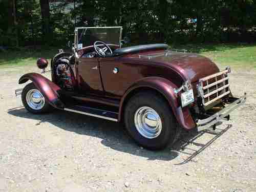 1930 Ford Model A Roadster Street Rod, Burgundy w\black interior, 350 CI, auto, 3900 miles, mustang front end, Ford 9" rear, fiberglass body & fenders, tilt wheel, rumble seat, luggage rack, engine cover, chrome smoothie wheels, BF Goodrich tires 195/70/14 on front, 285/70/15 on rear, original canvas top w/side curtains, show quality paint. Maine registration & bill of sale, no warranty, right to cancel auction-vehicle listed locally. Appraised @ 29,500.00. Call 207-590-6606
