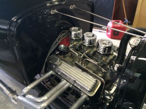Newly finished 1930 Ford 5 Window Coupe. Henry Ford Steel car with original frame.Fresh SBC 350 and TH350 Trans. Offenhauser Three Deuce Intake with Rochester Carbs (all rebuilt). 10 bolt posi rear with new 4 bar suspension. Drop front end with Disk Brake Conversion. Custom alum radiator with trans cooler. Halibrand replica rims with 12" wide whitewall pie crust cheater slicks. Sanderson headers and sidepipes. New Interior with Custom Bomber Seats, autometer gauges and lokar shifter. This car was done the right way - new black paint to show just how straight of a car it is. Fun car to drive and always turns alot of heads.