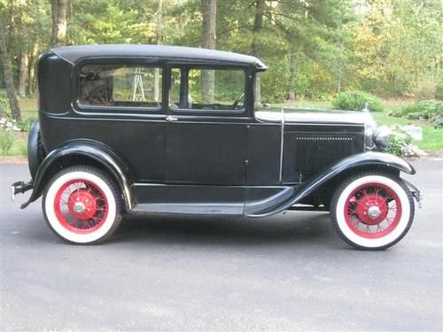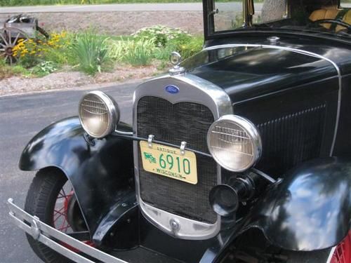 Up for auction is this very nice 2 door sedan. This car is my current driving toy, so the miles stated will go up slightly until auctions end. The car has a solid body with no rust or dens with no patch panels or bondo present. It does have a few scratches here & there, but nothing major. It has a new vinyl top. The engine was rebuilt 10 years ago. There have not been many miles since the rebuild. The engine starts easily each time, idles good & smooth and does not puff smoke - even during start up. The spark advance & throttle levers both work as they should. The car has 4 new 19" firestones that were just put on. The "wide whites" look very sharp against the red wheels and black body. THe rims are painted and in nice shape. The brakes are new and adjusted good. The car stops amazingly well. The glass is all good with the only crack in the passenger's rear window. The windows roll up & down good. THe doors shut nice. The interior is new including the headliner, door panels, seats and kick panels. It looks very nice when you look i nside the car. The guages work, along with the headlights & taillights. Blow the 'aoogha' horn and watch them smile. People really appreciate seeing these old cars out driving around. So, there you have it, a great starting, running, safe with good brakes, good handling car. This could be the one for you. There are no known issues with this car. You can drive it as soon as you recieve it with no worries. I've been driving this car 3-4 times a week and has not acted up in any way. It is a very dependable, excellent driver and is very 'tight' without any rattling or squeaking anywhere. It does have a hitch on the back for pulling a trailor. You could remove the hitch if you don't like the looks of it. Don't miss out on this fairly priced Model A at $8200.00 buy it now. Please email for phone number to discuss this car. If you have any questions or concerns please please ask early and before the end of the auction. I am always happy to discuss this car and old cars in general. Bid with confidence. This car would be excellent for parades and advertising. I have just changed the oil too. It will come with new rain gutters which will need to be screwed on above the doors. A $1000 non-refundable down payment is due to PayPal with in 24 hours of the end of the auction. The balance in full is due within 7 days of the end of the auction either in person or wired to our bank account. The balance will NOT be accepted into PayPal. And additional wiring fees are the responsibility of the buyer on the buyers and sellers end. The car is currently stored in the garage and can remain there for 30 days until the car is picked up or transported. The buyer is responsible to arrange for and pay for the transportation of the car.