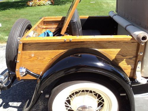 I am helping my elderly neighbor sell his 1930 Model A. It took him maybe 25 years to finish this Model A. Kids got in the way etc. He finished it maybe 10 years ago. Seldom driven. He had more fun restoring it than driving it. Some things are original and some things are custom. The frame, engine and drivetrain etc are all OEM Ford. The cab is modified. The box in the back is custom made. Originally he was making a boat tail for it but lost interest and decided to make it like a truck with a wood box. This started as a hardtop. He found a convertible top frame at a swap meet and decided to make it a convertible. The top will go down but he does not put it down because some of the arms hit and would damage the paint. 17" tires. Aftermarket front shocks. Engine professionally rebuild by a company that specializes in rebuilding these engines. New Radiator. Converted to 12 volts and an alternator. He has the original generator and 6 volt stuff. Stainl;ess steel bumpers. Many stainless steel nuts and bolts were used. All turned and hand polished. The fenders are fiberglass. The rest is steel. All the woodwork was done by the owner. As ytou can see the woodwork on the doors is very intricate and took him a long time to fit. The tailgate doers not open although it is made to look like it would. Electric windshield wiper. Always a fan favorite at local car shows. Parade ready. Needs nothing. Drive it anywhere. Show car clean. For info call Dave at 414-762-7426