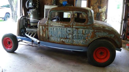This is one really cool 1932 Ford Coupe. The car was raced from 1951-1958 by a man from Kansas named Bud Hatch. The sponsor on the side says "#17 Hank's Sinclair Service, Ottawa, KS." That gas station is still in existence in Ottawa, KS. today. The car had many feature wins and was well known. The car was built with the idea of keeping it as close to the way it was back then. Basically, an original racecar that is street legal. The doors are all welded shut, it has an original step plate on the passenger fender, to climb in through the roof. (It's only welded in short strips, so you could possibly cut the welds and make the doors open. The hinges are still on). The inside is pretty much the way it was when we pulled the body off the original racing frame. It had a 5 gallon metal gas can for a fuel tank, so I kept it in there. It has a fresh rebuilt 302 Wakenshaw motor, runs perfect and sounds great. It has a 60's model Mustang syncronized 3-speed tranny and shifter. It has a brand new 3 row aluminum radiator. It's been choped and narrowed 3". The body was put on a NEW professionally built boxed 32 Ford frame. The frame has been bobbed in the rear, but I have the extensions that go with it. It has disc brakes on the front, good drum brakes on the rear, brand new front shocks, brand new triangulated coil-over suspension in the rear. This is a really cool car that has some history. It's RARE to find a car like this that was actually raced.