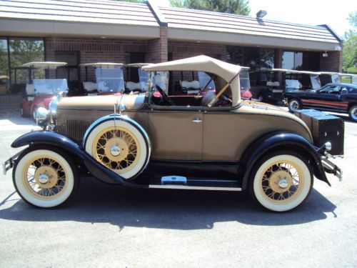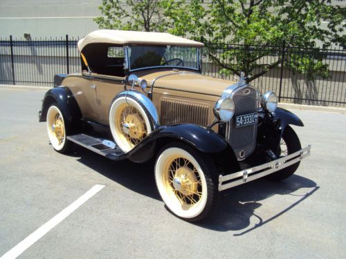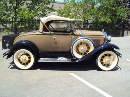 Beautiful 1931 Ford Model A Roadster, Dual Side Mounts, Tan With Black Fenders on 2040-cars