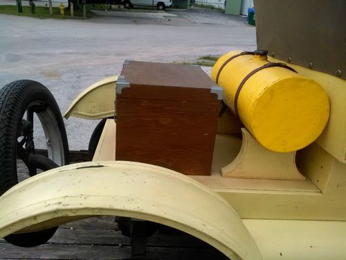 1925 model T in good shape. has custom wood body. fenders,running boards and rockers are steel.think they were going with a speedster look.has ten gallon gas tank wood trunk mounted on rear area.luggage rack on running board.plus mounted tool box.as you see in pics has wood wheels are told they are not reproductions.car has new battery, starter replaced.carb was rebuilt.over all car is nice not a show car,but fun.I bought the car ,but I do not fit into it.an need the space.car would make a fun weekend toy or parade car.people just love seeing them.If you have any questions feel free to call me at (239)707-3346 my name is scott. the car is being offered local so it my sale before auction ends.