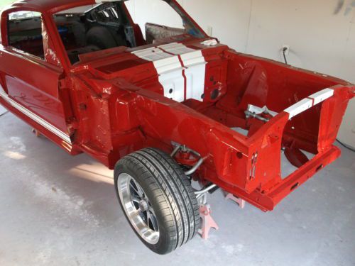 Up for sale is a beautiful 1965 Mustang Pro-Touring Resto-mod . You will be the talk of the town and the center of attention at car shows. I know people knock Trailer Queen cars, if you are one of those people, this car isn't for you. It was built for two purposes: 1) to WIN car shows and 2) to lay some rubber. Of course after you buy it you can do whatever you want with it. Every panel on this car inside and out is covered in base coat/clear coat red. This car is about as new as it gets, 80% of the sheet metal was replaced including the complete front-end upgraded with Mustang II style front suspension and steering. There is not a single part of this car that was overlooked. The paint is fresh base coat red with classic white stripes, the clear coat has been cut and buffed to a beautiful shine. The interior is 90% brand new as well, it is upgraded with Mustang sport seat II cushions and covers, I love these seats. They look like classic seats at first glance but they fit like a glove, a much better alternative to the later model seats that fit great but look out of place. It also has tilt steering and an MP3 stereo. The engine is a fresh 351w, all of the seals and caskets have been replaced, the motor is so clean you could eat off it. (I wouldn't because you would have to clean the motor again...) The front-end is independent front suspension (IFS) with coil over shocks, rack and pinion steering and cross drilled/ slotted rotors. The rear end is 4-link suspension with fully adjustable coil over shocks and disc brakes. I started a list of the new parts but I know I am missing a lot of items. $104 fuel tank. (PN#69002K 01 Mustangs unlimited) $79 torque boxes $400 installation (PN#A117LH 01 Mustangs unlimited) $148 sub frame connectors (PN#CEE3040 01 Mustangs unlimited) $1767 Heidts independent front suspension $450 installation --Rack and pinion steering, --Coil over shocks, --Tubular control arms, --Stock height spindles --Sway bar, --Urethane bushings, --Disc brakes, --Cross drilled rotors, --Braided steal brake lines $569 One piece floor pan $1600 installation (PN#AB46A Mustangs unlimited) $428 Upper and lower cowl $350 installation (PN#CP65C Mustangs unlimited) $259 Full firewall $600 installation (PN#647026 Mustangs unlimited) $870 Apron assembly $1000 installation (PN#DA146L 01, DA146R 01 Mustangs unlimited) $139 Radiator support and cross member $200 installation (PN#66138 01 Mustangs unlimited) $90 Door hinges (PN#522801, 522811 Mustangs unlimited) $359 Front fenders (PN#65006 01 Mustangs unlimited) $859 Rear quarter panels $500 installation (PN#77849 Mustangs unlimited) $105 Tail panel $150 Installation (PN#F1657 Mustangs unlimited) $69 Rear valance (PN#505444 Mustangs unlimited) $599 Trunk pan $600 installation (PN#DA1557 Mustangs unlimited) $160 Deck lid (PN#540110 Mustangs unlimited) $320 Transitional over axle panel $400 installation (PN#DB22 01 Mustangs unlimited) $120 Inner wheel wells $200 installation (PN#57887 Mustangs unlimited) $700 Driver/passenger doors (PN#50125 Mustangs unlimited) $100 Outer wheel wells $200 installation (PN#88113 Mustangs unlimited) $122 rear bumper with brackets (PN#BK1 01 Mustangs unlimited) $162 Chrome Grill REAR VALANCE 65/66 MUSTANG GT 505443 01 - $ 32.95 Quantity: 1 SPEEDOMETER CABLE 65/66 V8 4 SPEED MUSTANG 400310 01 - $ 18.95 Quantity: 1 DOOR BUMPERS SET (4) 65/68 MUSTANG& COUGAR 133N 01 - $ 2.95 Quantity: 1 HEADLINER BLACK 65/68 MUSTANG FASTBACK 9006030 01 - $ 37.95 Quantity: 1 PARKING BRAKE RELEASE HANDLE 65/66 MUSTANG 2760R 01 - $ 5.95 Quantity: 1 GLOVE BOX INSERT BLACK FLOCKED 65/66 MUSTANG M234 01 - $ 23.95 Quantity: 1 DECK LID LATCH 65/66 MUSTANG 543200 01 - $ 24.95 Quantity: 1 IGNITION SWITCH 65/66 MUSTANG SW583 01 - $ 14.95 Quantity: 1 IGNITION SWITCH SPACER 65/66 MUSTANG 10A885 01 - $ 6.95 Quantity: 1 IGNITION & DOOR LOCK KIT W/ PONY KEYS 65/66 2205C 01 - $ 34.95 Quantity: 1 ADJUSTABLE HOOD BUMPER 65/73 MUSTANG& COUGAR 6763B 01 - $ 2.95 Quantity: 2 KICK PANELS W/ SPEAKERS PAIR 65/66 COUPE/FASTBACK KMC1 01 - $ 109.95 Quantity: 1 HOOD LATCH CATCH 65/66 MUSTANG 46918B 01 - $ 10.95 Quantity: 1 HOOD LATCH PIN 65/66 MUSTANG 56929A 01 - $ 11.95 Quantity: 1 DOOR WEATHERSTRIP PAIR 65/66 MUSTANG WSDR1 01 - $ 14.95 Quantity: 1 DRIVER SEAT FRAME 65/66 MUSTANG DRIVERS SIDE - $190.00 Quantity: 1 WINDSHIELD WEATHERSTRIP 65/68 MUSTANG 67/68 COUGAR FWW1 01 - $ 16.95 Quantity: 1 BATTERY TRAY KIT 65/66 w/67 STYLE HOLD DOWN BTK65 01 - $ 24.88 Quantity: 1 FIBERGLASS HOOD< TRUNK WITH END CAPS K.A.R - $1109 FIBERGLASS WHEEL FLARE FRONT/REAR GOLDCO - $425 FIBERGLASS SHELBY SCOOPS GOLDCO - $65 FIBERGLASS EXHAUST COVERS GOLDCO - $225 Quantity: 1 FOUR LINK REAR SUSPENSION WITH COIL OVER SHOCKS 310719662655 - $1321.00 Quantity: 1 REMOTE TRUNK OPENING KIT HHO98 - $82.87 Quantity: 1 INSTRUMENT PANEL SET 645718674656 - $121.00 Quantity: 1 GRILL, CHROME 65/66 MUSTANG BCC7902-1 - $141.00 Quantity: 1 GRILL (LOWER), CHROME 65/66 SHELBY STYLE BCC7902-2- $121.00 Quantity: 1 1 FRONT APRON GT350R 65/66 W/ PARK LIG X1006 01 $214.95 1 WINDOW FELT KIT 65/66 MUSTANG FASTBA M161 01 $ 64.95 02 OUTSIDE MIRROR ROUND STANDARD LH/RH 576961 $39.90 COYS OLD SCHOOL Wheels 17X9 245X17 rear, 17X8 245X17 front, $1350.00 CHROME 30” ADJUSTABLE TILT STEERING COLUMN TC13 01 $479 Quantity: 1 BLACK, HALF WRAP TRI-SPEAR STEERING WHEEL HH SPR BLK $128 Quantity: 1 AS IS - NO WARRANTY This vehicle is being sold as is, whereas with no warranty, expressed written or implied. The Seller shall not be responsible for the correct description, authenticity, genuineness, or defects herein, and makes no warranty in connection therewith. No allowance or set aside will be made on account of any incorrectness, imperfection, defect or damage. Any descriptions or representations are for identification purposes only and are not to be construed as a warranty of any type. It is the responsibility of the Buyer to have thoroughly inspected the vehicle, and to have satisfied himself or herself as to the conditio