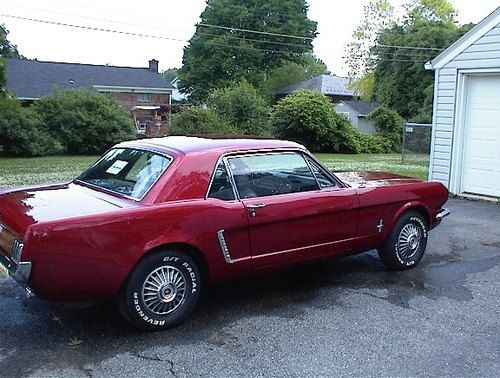 1965 Ford Mustang Coupe, Candy Apple Red, Black Leather Interior, Front Drivers Seat needs Repair, Several Scratches in Paint on sides of Car, 289 Engine, 8 Cylinder Automatic, Power Steering, Runs Good, Inspected until July of 2014, No Rust, Garage Kept, Car is Totally Original. Please feel free to call with questions 610-437-4822.
