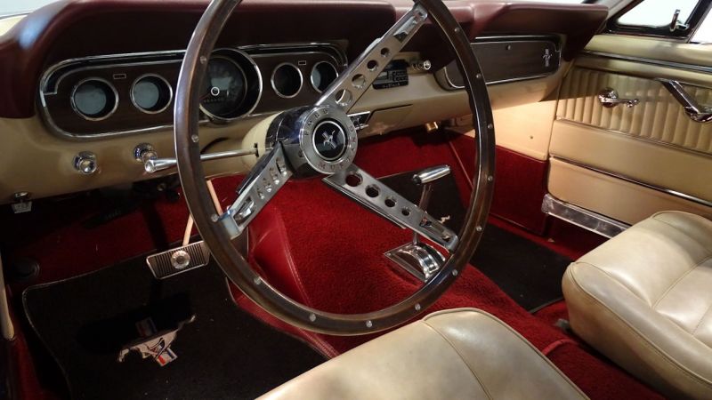 Options for this 1966 Ford Mustang GT for sale include: AM/FM radio with cassette player, vinyl interior,