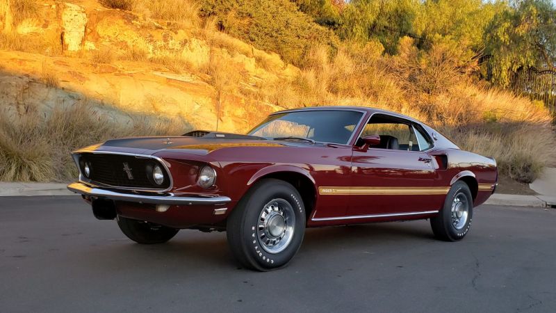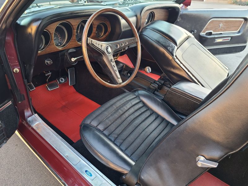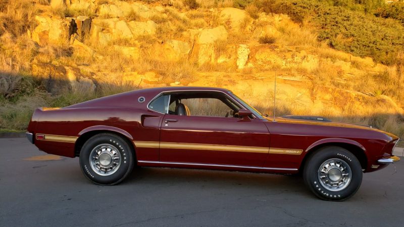 Contact only by mail : fontasuis421@gmail.com 1969 Ford Mustang Mach 1 finished in Royal Maroon over black vinyl, the car is powered by an overbored M-code 351ci V8 mated to a close-ratio four-speed manual transmission and a 3.25 1 rear end with a limited-slip differential. Since 2 tears ago had rebuilt the engine and the carburetor, installed a replacement fuel tank and exhaust system, resurfaced the flywheel, refurbished the brakes, replaced the shocks, and more.
