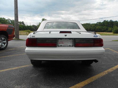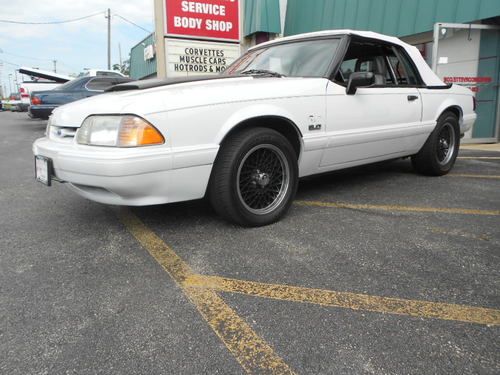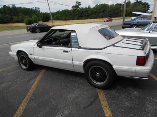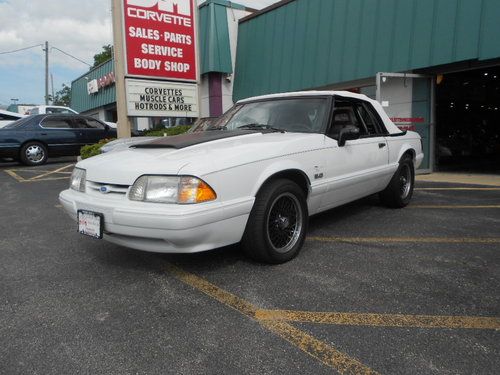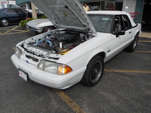1989 MUSTANG LX. THIS CAR HAS OVER 20,000 DOLLARS IN RECEIPTS OF ALL THE WORK RECENTLY DONE,THE 5.0 MOTOR HAS A FORD "F" CAM..ALUMINUM PORTED HEADS,BBK INTAKE,FULL LENGTH HEADERS,PULLEYS AND MUCH MUCH MORE,THE 5 SPEED TRANS HAS BEEN REBUILT TO HANDLE THE POWER,AND THE REAR END HAS NEW AXLES AND 4.10 GEARS..THIS IS A NO RUST CAR.AND IT A HAS A FULL ROLL CAGE AND THE FRAME IS TIED TOGETHER,THIS CAR WAS BUILT RIGHT!!! THERE SRE NO ENGINE LIGHTS ON,OR NOISES,THIS CAR JUST PLAIN RUNS OUT!! IT ALSO HAS A NEW CONVERTIBLE TOP THAT HAS NEVER BEEN DOWN,( IT GOES DOWN BY HAND AND GOES UP WITH POWER) DONT KNOW WHY THAT IS..BUT ITS NOT A BIG DEAL.THERE IS ALSO NO HEAT OR AC IN THE CAR IT WAS REMOVED,BUT ITS CONVERTIBLE AND CAN ALWAYS BE ADDED BACK ON LATER.( WE DONT HAVE THE PARTS FOR IT).. THIS CAR RUNS AND LOOKS EXCELLENT,AND SOUNDS SUPER MEAN. THERE IS A SPOT ON THE DASH WHERE SOME DECALS WERE REMOVED AND MAY NEED REPAIR BUT OTHER THEN THAT SHE IS READY TO SHOW OR GO!!! PELASE CALL WITH ANY QUESTIONS 630 968 0031 OR EMAIL WWW.DMCORVETTE.COM