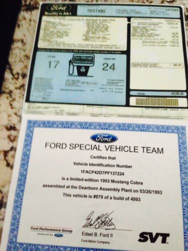 1993 Ford Svt Cobra #879 Blk Leather/ Sunroof on 2040-cars