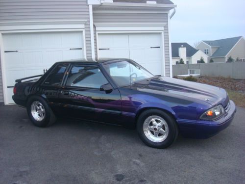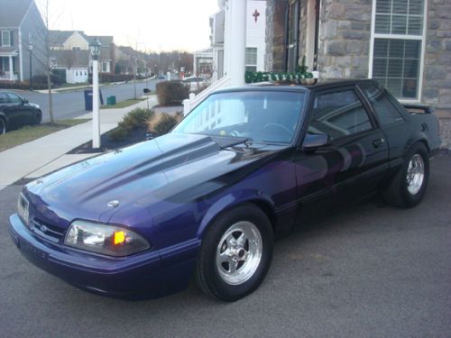 Offered for sale is a 1993 Supercharged Ford Mustang Coupe (“Notchback”).  The VIN number is 1FACP40E0PF214866.  This car is an original black on black tweed two owner car with only 57K original miles!  The car was purchased from the original owner back in 2002 with 47K miles so all worked described below has at most 10K miles.  It had been extensively modified in 1995 by the previous owner but the parts were quite dated so the car was rebuilt in 2002.   After the rebuild the car was dynoed in 2004 with the 3.33 pulley on the supercharger at 508 horsepower and 463 ft/lb of torque @ 5,800 RPM’s.   The dyno graphs will be included with the sale.  With the 2.75 pulley the car makes 3-5 pounds more boost so in its current configuration it is probably pushing somewhere is the 550-575 horsepower range.