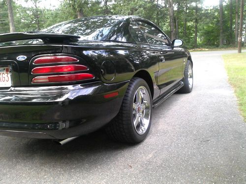 Up for your consideration is my 1995 Mustang Cobra.I am the 4th owner.The car has 44k original miles.Car is certified number 3050 out of 4005 built that year.(I have the Cert).AC has been removed from the car but everything else works as it should.I would give the exterior/paint a 8/10 has a couple of small dings,remember the car is 18 years old.Interior is a 9/10 .The only interior mods are wide-band gauge and Boost gauge.Stock am/fm/cass/cd player Bose system,Chrome Cobra R wheels(no curb rash)17x9 275/40/17 Sumitomo up front/ 17x10.5 Sumitomo 315/35/17 in the rear.Tires have 6k street miles.Stock Cobra brakes with cross drilled slotted rotors were new with tires and wheels'''''