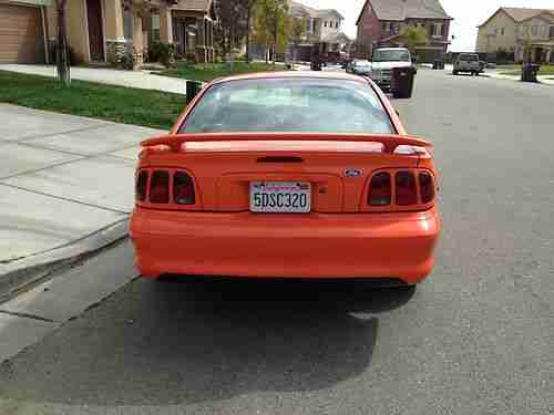 Up for sale is a excelent condition 1996 Ford Mustang Gt with only 54K miles. Very rare car 1 of 829 ever produced. Has Cervini's hood and side skirts with in front of wheel exhaust. This car drives like a new vehicle. Ice cold air conditioner and hot heat. Power drivers seat and full leather. Has factory manual and original factory sticker. Paint is 9 of 10 and interior is 9 of 10 due to cracking of leather on front seat but their are NO tears or rips at all just cracks. Never smoked in or seen any rain.Has 17X10 AZE rims in the rear and 8.5X17" in the front. I have a carfax available if you would like to see it or have any questions feel free to contact me. Please keep in mind car is for sale locally also and i do drive this car so the miles will go up some.