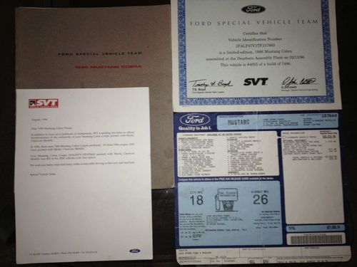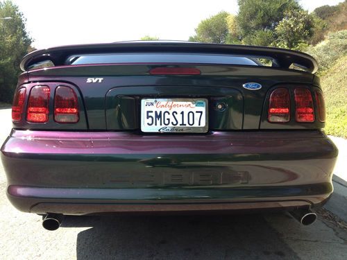 PRICED WAY BELOW OTHER MYSTIC COBRAS WITH ALL THESE NON MOTOR MODIFICATIONS!!! 1996 MYSTIC COBRA #55 55,430 ORIG MILES, COMPLETE MAXIMUM MOTORSPORTS COIL OVER SUSPENSION W BILSTEIN SHOCKS/STRUTS(ONLY 1,000 MILES ON THIS SUSPENSION UPGRADE W RECEIPTS TO PROVE THAT), CASTER CAMBER PLATES, 18" REAL SALEEN RIMS WITH BFG G FORCE TIRES WITH 90%TREAD, SALEEN ALUMINUM RACING PEDALS, CROSSED DRLLED/SLOTTED ROTORS W CERAMIC BRAKE PADS, 3.73 GEARS, MAC CATBACK EXHAUST WITH CUSTOM BUILT X PIPE, SPARE BORLA MUFFLERS INCLUDED, K&N INTAKE, ENGINE IS BONE STOCK WITH ZERO MODIFICATIONS WITH MOBIL 1 OIL, NEW BATTERY, 2 NEW OXYGEN SENSORS, CAR RUNS ABSOLUTELY PERFECT/ZERO PROBLEMS, SMOGGED ON AUG 2013 AND REGISTRATION PAID THRU JUNE 2014, MYSTIC PAINT IN EXCELLENT CONDITION, GARAGED, CAR COVER, VIPER 500 ALARM W AUTO START, ALPINE CD PLAYER W REMOTE, VERY RARE DOCUMENTATION INCLUDING ORIG. MSRP WINDOW STICKER FROM DEALER, ALL FACTORY SVP PAPERWORK, CHILTON MANUAL,CODE KEY CAR CODE READER, SPANNER WRENCH SO YOU CAN ADJUST THE SUSPENSION HEIGHT TO YOUR LIKING, LOTS OF RECEIPTS TO BACK UP MODS(SEE PIC OF RECEIPTS), THIS IS MY 4TH MUSTANG, HAVE OWNED THIS COBRA FOR 6 YEARS, CLEAN TITLE, CARFAX, PEOPLE WILL STARE AT THIS CAR WITH THE MYSTIC PAINT AND THOSE SMOOTH LOOKING SALEEN RIMS, HANDLES LIKE A RACE CAR, PRICED TO SELL AT ONLY $11,500. COME AND DRIVE THIS CAR AND YOU WILL WANT IT! LOOK AT OTHER MYSTICS WITH THESE MODIFICATIONS AND THIS IS DEFINITELY PRICED RIGHT. ALL MODS ARE RECENTLY DONE WITH LESS THAN 1,000 MILES ON IT SINCE UPGRADES(RECEIPTS SHOW THAT) TEXT (619)251-1909 OR EMAIL ME AT CRS619@COX.NET FOR MORE INFORMATION. I TRULY LOVE THIS CAR BUT NEED GARAGE SPACE.