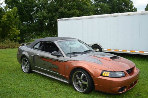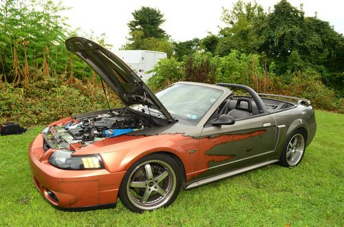You are looking at a professionally built 2002 Mustang GT convertible that has undergone a Cobra conversion. I have used all the good parts of a 2004 Cobra and kept the better parts of the GT like the solid axel. I am a Senior Master Ford technician and have done all this work (except paint) myself. I bought the car in 2007 and it was bone stock at the time. This car has been a fun car to drive on sunny days for me and has not seen regular track time. I have taken it to the track twice just to see what it does, the car ran a best et of 11.65 at 118mph on street tires. This car is completely street legal and will pass emissions in any state, it has cats (expensive ones). I love this car and hate to see it go but times are tough and I don't drive it much. Feel free to contact me with any questions. If you wish to see it in person and go for a drive, I will accommodate. Thanks for looking!