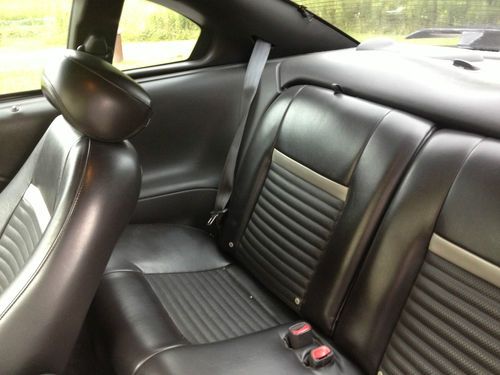 The exterior of the car is in good shape overall. When i purchased the car it had previously been keyed but was repaired to a certain degree. The key marks are only on the passenger side from the hood to the trunk lid. They dont stand out as bad as you would think though. I wax the car roughly every two weeks with a turtle wax black carnauba wax kit and it hides the scratches quite well. The front bumper also has quite a bit of stone chips in it as well. I would assume the previous owner lived on a dirt road or something. I had a quote done through a good body shop to repaint the front bumper, hood and fender and it was around $1000. i have already figured this into my asking price. If you would like me to have the work done and add the amount to the cost of the car that can be arranged as well. Other than that the car has minor wear on the paint and no major dings or dents. I put black dual hash mark decals on the front fenders to dress the car up a little and it looks great. I also put brand new American Muscle 18in. staggered black saleen wheel kit on it last fall. the tire have about 500 miles on them and no burnouts or anything of that nature. They have a nitrogen fill as well.