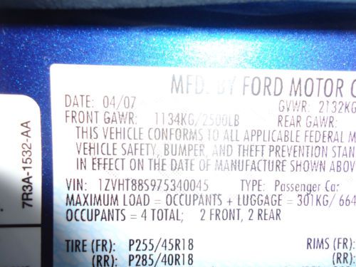 2007 Ford Mustang Shelby GT500 ORIGINAL ONE-OWNER CLEAN CARFAX 8,000 MILES!!! GT500 PREMIER TRIM PACKAGE SHAKER 500 AUDIO SYSTEM - 18” WHEELS You are looking at a one-owner 2007 Ford Mustang Shelby GT500. It is a non smoker’s vehicle with 8,000 miles. The Exterior paint looks great. Leather interior is in excellent condition as well. This vehicle comes nicely equipped with Shelby Tungsten Tape package, GT500 Premium Trim Package, Active Anti-Theft System, Sport Bucket Seats with Cobra Logo, Shaker 500 Audio System, Fog Lamps, Power 6-Way Driver’s, SVT Tuned Suspension, 18” Aluminum Wheels, MP3 Adapter, Power Windows, Locks and Mirrors, 6-speed Manual Transmission. Original MSRP of $43,765. $7,000.00 IN UPGRADES INCLUDE: