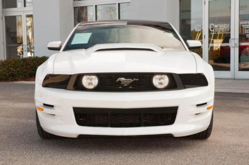 This white Ford Mustang is dressed to show style and character. It's not overdone, and looks the way it performs, with Mustang performance and road handling capabilities. The car has been well cared for with local owner and a clean carfax/autocheck. It has a painted top that gives it a smoked glass look, custom front and rear facia, leather interior, and a T shifter. Chrome wheels, dual exhaust, and a shaker hood complete the muscle car appearance. A must see and drive for anyone looking at a Ford Mustang.