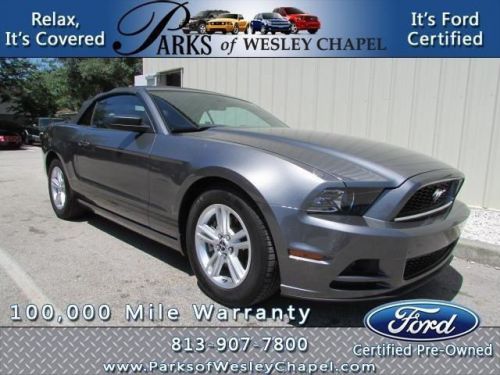 *** CONVERTIBLE *** CLEAN CARFAX *** ONE OWNER *** FACTORY CERTIFIED 100K MILE WARRANTY *** SYNC PACKAGE *** POWER DRIVER'S SEAT *** TECH PACKAGE *** DAYTIME RUNNING LIGHTS *** STERLING GRAY FINISHED OVER STONE INTERIOR *** Imagine yourself behind the wheel of this superb-looking 2014 Ford Mustang. Climb into this wonderful Ford Mustang, knowing that it will always get you where you need to go, on time, every time. Ford Certified Pre-Owned means you not only get the reassurance of a 12Mo/12,000Mile Comprehensive Warranty, but also up to a 7-Year/100,000-Mile Powertrain Limited Warranty, a 172-point inspection/reconditioning, 24/7 roadside assistance, trip-interruption services, rental car benefits, and a complete CARFAX vehicle history report. ABS brakes, Alloy wheels, Electronic Stability Control, Illuminated entry, Low tire pressure warning, Remote keyless entry, and Traction control. At Parks Ford of Wesley Chapel, we are pleased to be your true "full service" dealer for the Tampa Bay area. Whether you are searching for New/Used/Certified inventory, world class service, collision center, or friendly straight forward financing, we can help! We pride ourselves on having an excellent reputation, just check out our reviews.