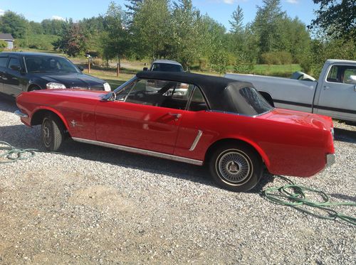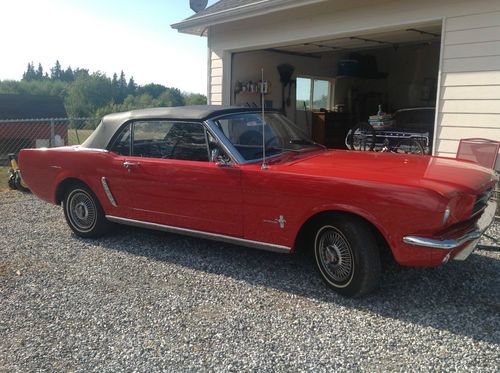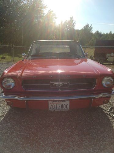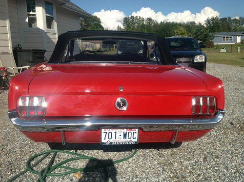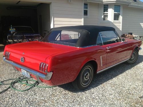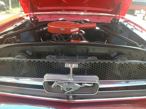 65 mustang great condition. Ragoon red with new black top and black interior. Not much wrong with this fun ride. Has a clean 200 cid engine that runs great. Has a couple imperfections in the paint. No rust on this ride. Garage kept. very clean all over. Has center console