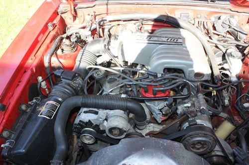 Up for sale is my wife's 1991 Red Mustang 5.0 GT Convertible. The car has new tires,headlights & driving lights, rebuilt alternator, American thunder flowmaster 40 series cat back system , new wires, plugs ,cap and rotor . The car has low mileage with only 69,780 Miles. The only rust on the car is on the bottom side of the trunk lid as shown in the picture . The windshield has a crack in the top right hand side. The top will need a new top , stereo is an sony explode CD player. As for the drivetrain the car has a very strong running 5.0 with a sooth shifting 5 speed manual trans.The front passing side spoiler has a crack in it . feel free to swing by and check out the car. winning buyer is responsible for shipping the car and a $500. deposit is due using paypall at the end of auction and the rest is payable when car is picked up . thanks for looking PS---- I have a rear saleen spoiler that I will include with the car if the reserve price is met. it would need to be painted and installed by the winner of the car.