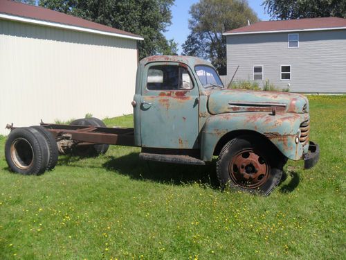 1948 ford F-6 truck alote of usable parts doors open and close very nicely solid steps both sides cab is in very great shape for a rat rod or fix this one up no motor trans is still in truck 4 speed,hood is nice front bumpers are great,front grill has a few dents in it tires are good no loss of air and moves very ez,was in a barn for a long time please contact me with any questions ,Bob at (518)365-7777 thanks for looking