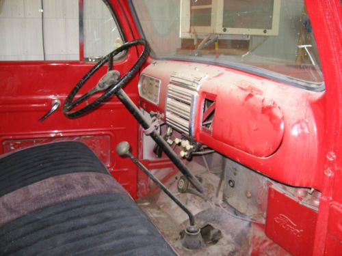 This truck only has 34,500 miles. It was a shop truck and came out of Scott City, Kansas. NO RUST. It was owned by the county when bought new. This is an F 3 truck. 3/4 ton truck. No a/c, but does have a heater. The engine is a flathead V 8, with a 4 speed trans. Runs and shifts great. It has a brand new oak bed floor that just needs to be installed. The truck was repainted it's original color 6 years ago, which was red. It is just your regular paint with clear coat. Any questions please feel free to call me. 979-200-0832 ask for Skip |