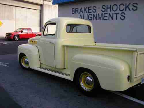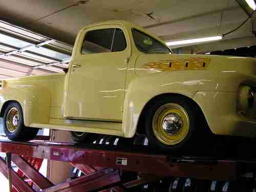 1951 Ford F1 Street Rod. Highly modified with Chevelle independent front end. Front Disc Brakes. Chevrolet 383 Stoker motor with less than 1000 miles. 700R 4 speed automatic transmission. Tilt column with Billet Specialties steering wheel. Wheel Vintiques Smoothies Wheels--15x7 in front--15x12 in rear. Interior recently redone with split bench seat---center console with drink holders. Leather inserts. New carpet and headliner. Paint in extremely good condition although not perfect. ASOLUTELY NO RUST. Body in near perfect condition. Wood bed in good shape but will need to be refinished to make perfect (see pics).