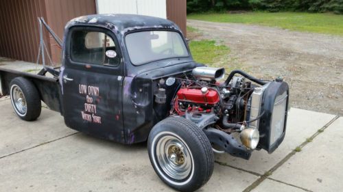 Up for sale is a true steel body 1951 Ford pickup rat rod. Many modifications and upgrades as listed below. The rat rod is titled and has been insured/registered over the last few years and always grabs a lot of attention going down the road. Complete functioning drivetrain includes a Pontiac 455 CID motor (out of a 1973 GTO with 1974 cylinder heads) with edlebrock aluminum intake, edlebrock carburetor and vintage hood scoop. Strong V8 sound through the headers and mufflers. Engine starts at the turn of the key. Powered by an automatic turbo 400 transmission controlled by a Hurst shifter and connecting to a 12 bolt rear end. Cooled by an aluminum radiator and electric cooling fan. Front disc breaks / rear drum brakes. Power steering and upgraded front A arm front suspension with a low stance - a must for any rat rod. Interior is a basic bench seat with two seat belts that is comfortable to sit in and drive for me at 6’ tall. Room for somebody even taller or an easy modification to move the bench seat or just adjust the tilt steering column for a closer reach. Gauges include tachometer, oil pressure, water temperature and voltage – all the engine criticals. Door windows move by cranks on the interior door panel but function poorly. Easily moved up and down by hand as an alternative. Crack in the driver’s side door window and passenger’s side door vent window but have been this way for years. Keyed ignition and toggle switch for headlights/taillights/gauge lights and cooling fan are confirmed to function as seen in the pics. This rat rod has been a real head turner any time I’ve been out in it. This has been in my family as it was my uncle’s until this year and I’ll be sad to see it go. We’ve had it out in many classic cruises over the years – a lot of fun to drive. I hope the pictures can display how much of a one of a kind ride this is – please contact me with any other questions and I’ll do my best to provide you as much detail as I can. Thanks for your interest. |