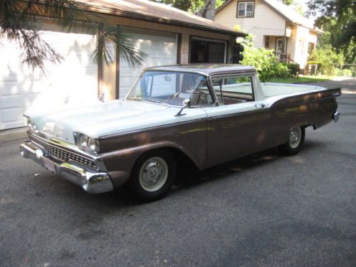1959 Ford Ranchero in very nice condition. 292 V8 with the 3 speed manual transmission column shift. Solid body with very nice newer paint. Very nice interior with reupholstered seat. Original floor mat, door panels, paint and headliner. Runs and drives great and looks great. This is a very solid and fun driver. Serviced and ready to cruise. I'll be glad to talk with you and answer any questions that you might have. 513-617-8691 Dennis