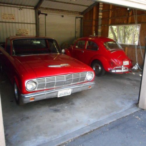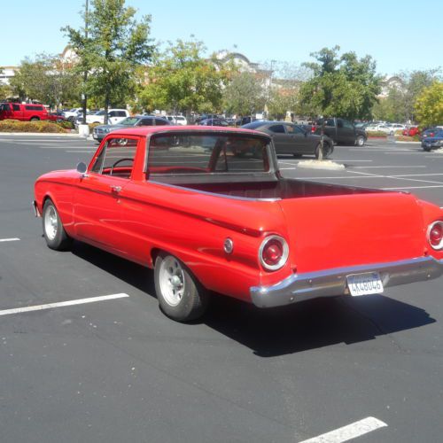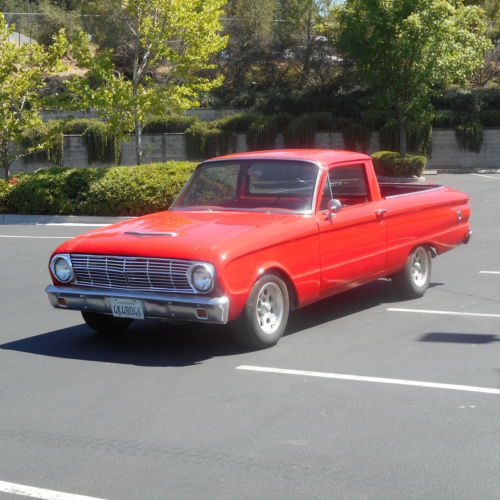 1963 Ford Falcon Ranchero. 302 V-8 and stick shift "on the tree". Motor runs very smooth, has good oil pressure, doesn't smoke or drip, and runs cool. The transmission shifts easily and is quiet, as is the rear end. Overall very nice little truck, it is very dependable and quite presentable. It is an older restore, but has been well maintained. The interior is very nice and the paint only has a few little flaws. The truck is driven daily as needed and never lets me down. It is an original 5 lug, 260 v-8 vehicle. Parts are readily available for these trucks through several sources. Can be driven while you restore or just drive like it is. There is minor surface rust on the bumpers, might even polish out. It did have a professional repair of the common problem with the well under the front of the bed. Looks good now and is sealed well. I do have it for sale locally too, so reserve the right to end early, but vow to leave it on E-Bay once the very reasonable reserve is met. I think that is only fair. So bid early and fairly and I'll hold it for you. I have the title in hand and the vehicle is licensed and insured in my name. It is being sold as-is where is. But I can help find a shipper and will assist getting it on a transport. Or drive it home. I bought this truck from an elderly guy that used it on his small ranch for hauling dog food, chicken food etc. He had most of the work done about 10 years ago but drove it minimally and always kept it up. Please let me know if you want more pictures or have further questions. My number is (805) 462-9515 I am only selling because I've started on a Studebaker pickup project and could use the bucks! I don't have a real professional camera so hope that I am able to convey how nice it is. I didn't detail under the hood as I think the buyer should see it as it is as a driver. The previous owner did give me a complete, ($300.), wiring loom, as the original is getting old. But since everything is working I just never installed it. The loom will come with the truck. It has a spare and jack mounted behind the driver's seat.