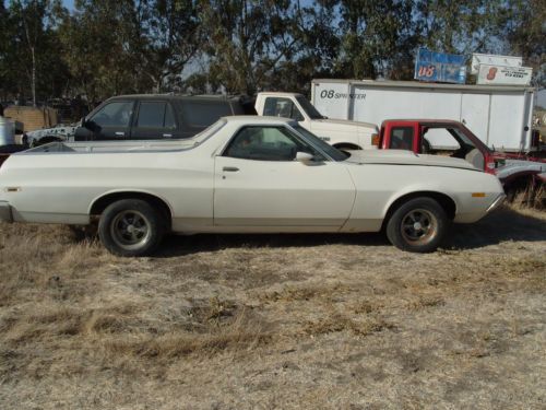 this is a ford 1972 ranchero GT 351c Cleveland factory 4 bbl heads and manifold ,possible 4 bolt main block,car has some rust drivers side just behind drivers door in rocker panel ,some unfinished repair on left front fender pic's of both take a look ! car was last reg. 1992 , stored in a barn since ! dash has a few cracks in it! great resto project ! sold with a bill of sale ,as-is !!